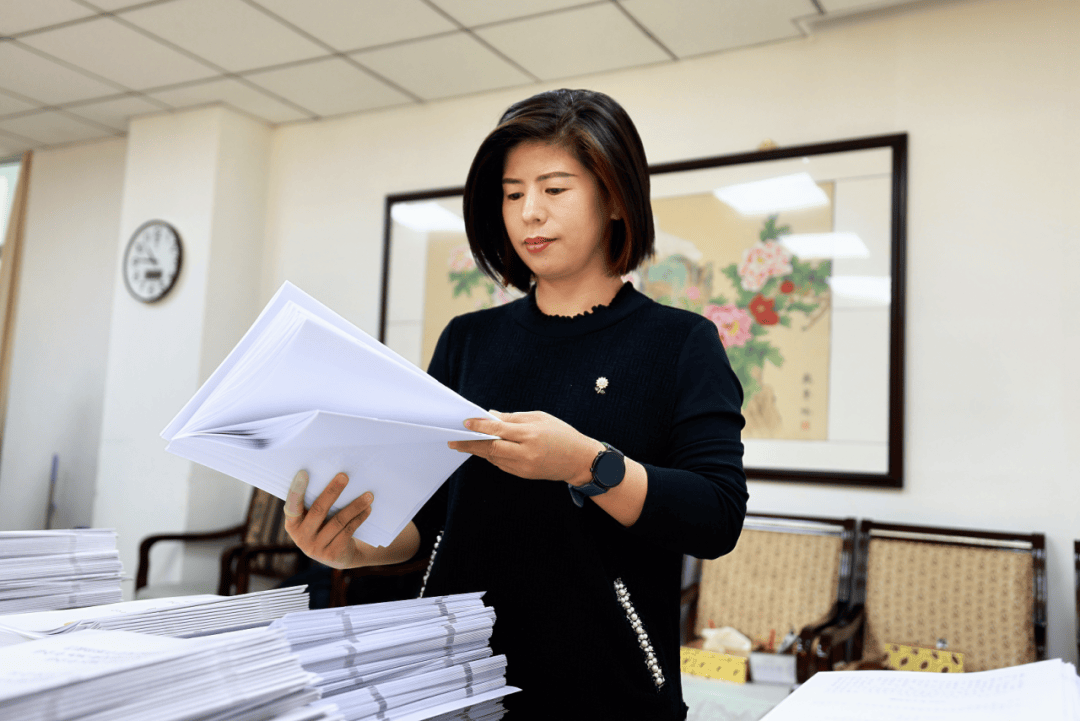 1月11日上午,工做人员正正在分拆会议材料。会议指南、代表证件……每份材料都被分门别类、细心查对后划一放入文件袋中,表现了严谨详尽的工做立场和务实高效的工做做风。
