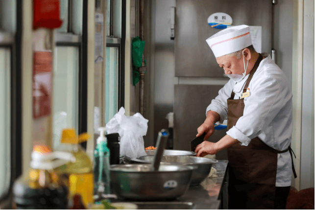 1978年出生的陈宇,1997年入职铁,2017年正式转岗成为一名餐车厨师。从列车员到餐车厨师,从办事搭客出行到守护搭客舌尖,二十余年的铁生活生计里,他一直苦守初心,守着餐车这方寸之地,用一盘盘热菜、一碗碗热粥,温暖着无数搭客的归家。食物安满是餐车工做的生命线,也是陈宇刻正在骨子里的原则。每天接车后,他第一件事就是来到上料室,对照提前打好的票据,查抄食材、拾掇后厨。列车食材均由天津客运段同一采购,从泉源上把控平安,而陈宇则是餐车食物平安的“第一道把关人”。上料时,陈宇会对食材逐项进行严酷检验:新颖猪肉要看色泽能否鲜明,时令蔬菜要查能否新颖无腐臭,米面油要一一查对保质期取质检演讲,每一样食材都确认及格后,才答应入库。走进餐车后台,生熟加工区、清洗消毒区、食材存储区划分清晰,标识夺目,生肉取蔬菜分隔存放,生熟刀具、案板严酷区分,毫不混用。洗菜池边,青菜正派历“一清二洗三浸泡”的严酷流程,水流声取切菜声此起彼伏,奏响了后厨忙碌的序曲。“我们给搭客做的饭菜,都是按本人吃的尺度来做的。”陈宇的这句话,是他对搭客的许诺,也是餐车团队最朴实的工做原则。列车上的所有菜品,都现做现卖,每份盒饭上都精准标注出餐时间,保质期严酷节制正在2小时内,确保搭客吃到的每一口都是新颖热乎的。