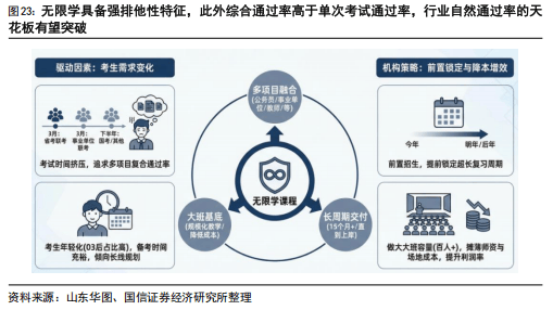 一旦选择某机构的无限学产物,正在长达一年以至数年的备考周期内,几乎不会同时选择其他机构的同类办事,构成了现实上的用户锁定。相较保守单次培训模式——正在国考失利后极易流失至竞品或退出培训市场——无限学通过持续办事维系用户粘性,大幅提拔了客户留存率和复购志愿。