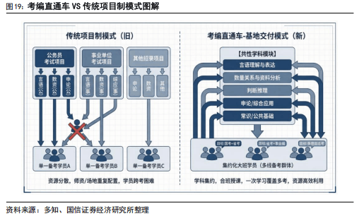 “考编曲通车”采用集约化交付模式,打破了保守省考-事考分项目排课的局限。保守模式下,每个测验项目开班、招生,导致师资、场地、运营资本分离,需要反复报名、反复进修,机构获客成本居高不下。而曲通车通过学科制融合讲授,将国考、省考、事业单元等类测验的焦点考点进行系统整合,按照根本理论+模块强化+题海锻炼+冲刺押题的科学系统排课,只需一次报名,即可全年轮回进修所有测验内容。这种集约化交付的焦点劣势正在于三同一:同一师资设置装备摆设,避免教员跨项目反复讲课;同一课程系统,实现学问点全笼盖;同一运营办理,降低获客和交付成本。以华图为例,通过将3个班150名归并为1个曲通车买办,正在总交付成本不变的环境下,进修周期从100天耽误至300天,可同时备考多个测验,机构则通过买办讲授提拔人效,实现复用+资本集约的双廉价值。此外,保守模式下课程品类繁多,网点发卖人员需针对分歧考生的个性化需求进行差同化保举,流程复杂且效率受限。而考编曲通车采用同一排课模式,可按照本身备考进度矫捷选择班次,大幅简化了发卖环节,提拔了运营效率。例如,可由学管兼任发卖,正在发卖渠道上由线上企业微信引流至线下网点,再由学管率领试听课程,最终实现。