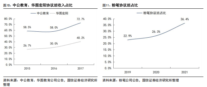 2017年,中公教育达到72。7%,华图教育仅为40。2%,2019年粉笔营业中和谈班占比仅22。9%。中公教育是最早推出和谈班的培训机构和谈班,持久结构中已堆集构成强大的渠道收集,正在此前中公教育“规模优先”的计谋框架下,中公教育将和谈班做为焦点增加引擎,通过“不外退费”的高客单价模式快速抢占市场。华图教育和谈班结构起步相对较晚,财产研发相对畅后和规模经济不显,同时本身正在2015-2017年间两次从板上市波折,相对而言正在和谈班推广上连结胁制。粉笔因为其本身的营业模式偏线上,初期和谈班仅针对面试,2020年后才逐渐起头涉及笔试项目。