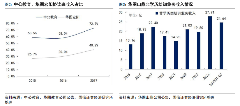 2015-2021年:和谈班合作阶段取差同化成长。2015年后,和谈班成为公考培训行业焦点合作抓手,华图教育取中公教育凭仗先发劣势快速抢占市场。此阶段行业呈现较着分化,中公教育高度依赖和谈班,2017年和谈班收入占比达72。7%,且2018-2021年持续维持正在74%-78%的高位;华图教育同期和谈班收入占比仅40。2%,显著低于中公。这一差别既表现了华图相对稳健隆重的运营策略,也反映出和谈班模式所构成的先发劣势取品牌壁垒对后发者的束缚。期间公司先后于2015年4月、2016年、2018年公司冲击上市,均未果。