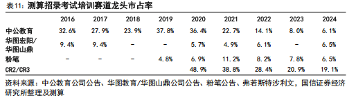 后和谈班时代款式沉塑,华图山鼎汗青负担轻,已抢占先机。2021年前和谈班“高收高退”降低考生决策成本、放大需求,为机构供给了丰裕现金流,帮力行业CR3一度近50%。但素质是财政许诺替代讲授深化,实收扩张受制于天然通过率。21年表里部多沉要素下短处突显,龙头退费率激增,2024营收CR3降至19%。华图山鼎负担相对较轻(17年和谈班占比40%,远低于中公73%),后和谈班时代抢占先机,2024年营收超越中公,成为行业第一。