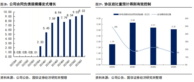 2023年合同欠债迸发式增加,对应公司衔接华图教育无形资产授权、正式大规模开展招录培训营业,线下网点扩张取课程系统落地带动预收款快速堆集。另一方面,聚焦公司取测验相关的合同欠债余额(即和谈班可退费的上限金额)自2024年上半年起正逐渐削减,一方面反映公司退费率获得无效节制,另一方面连系公司收入增加反映公司非和谈班产物合作力正在稳步提拔。